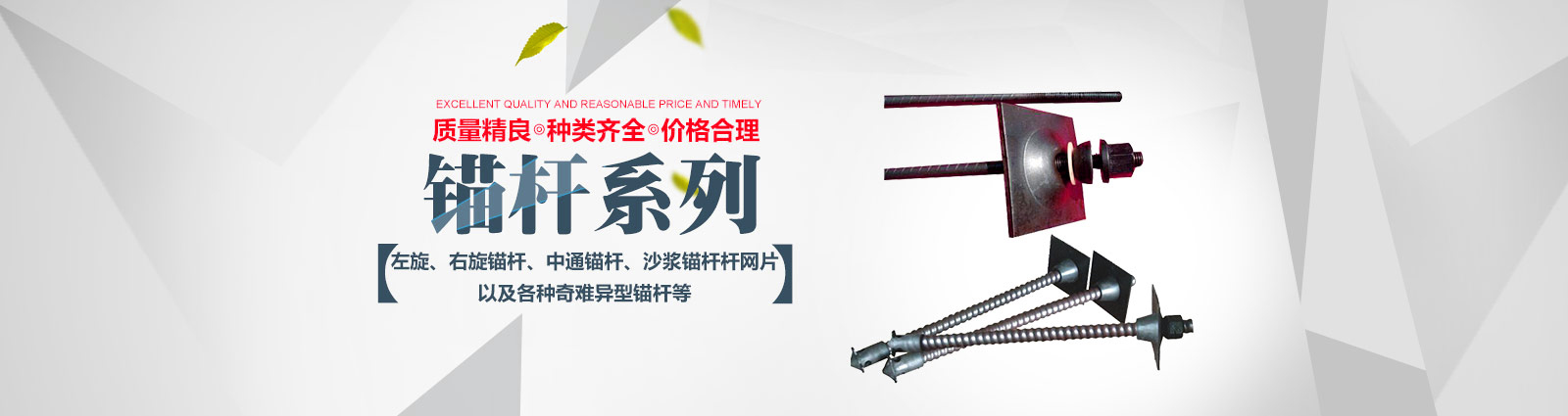 其中螺紋鋼樹脂錨桿支護是現行運用為廣泛的煤礦錨桿支護技術,主要用于煤礦煤巷的支護,還可以同其它構件聯合形成各種組合支護,如錨噴支護、錨網鋼帶支護、錨索支護,我公司生產的系列支護左旋無縱肋樹脂螺紋鋼錨桿、高強管縫式錨桿,以及用于礦山支護的各種配件產品,高強托盤鋼、錨索、索具、扭矩放大器、球形墊等,可根據具體的采礦地質條件聯合使用,具有很強的使用性、可靠性和安全性。